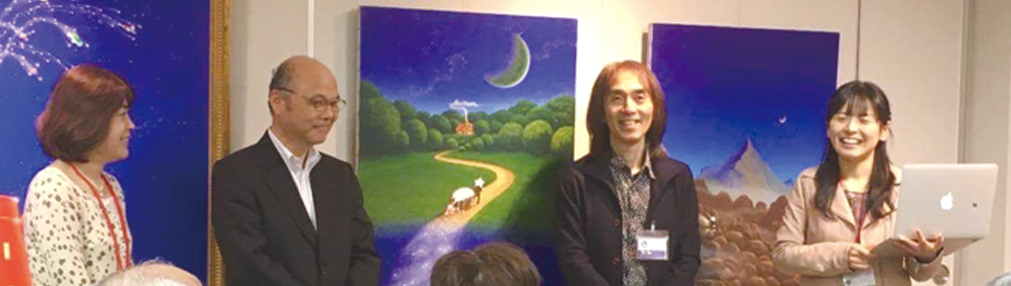 はせがわファミリーとの出会いは、震災の年の6月ごろの一本の電話でした。ユネスコ活動でお世話になった東京の吉岡さんから30数年ぶりに連絡が来て、はせがわさんという画家の方が被災地応援に直接宮城に行くので協力して欲しいとのことでした。当時は、復旧の混乱期であり詳細は覚えていませんが、被災地支援ということで地元紙の河北新報はじめ知り合いの方々を紹介しました。その中で、たまたま河北新報の記者さんを通して私の腹話術の生徒だった気仙沼市立津谷保育所の千葉ふみ子先生とつながったことを後で知り驚きました。